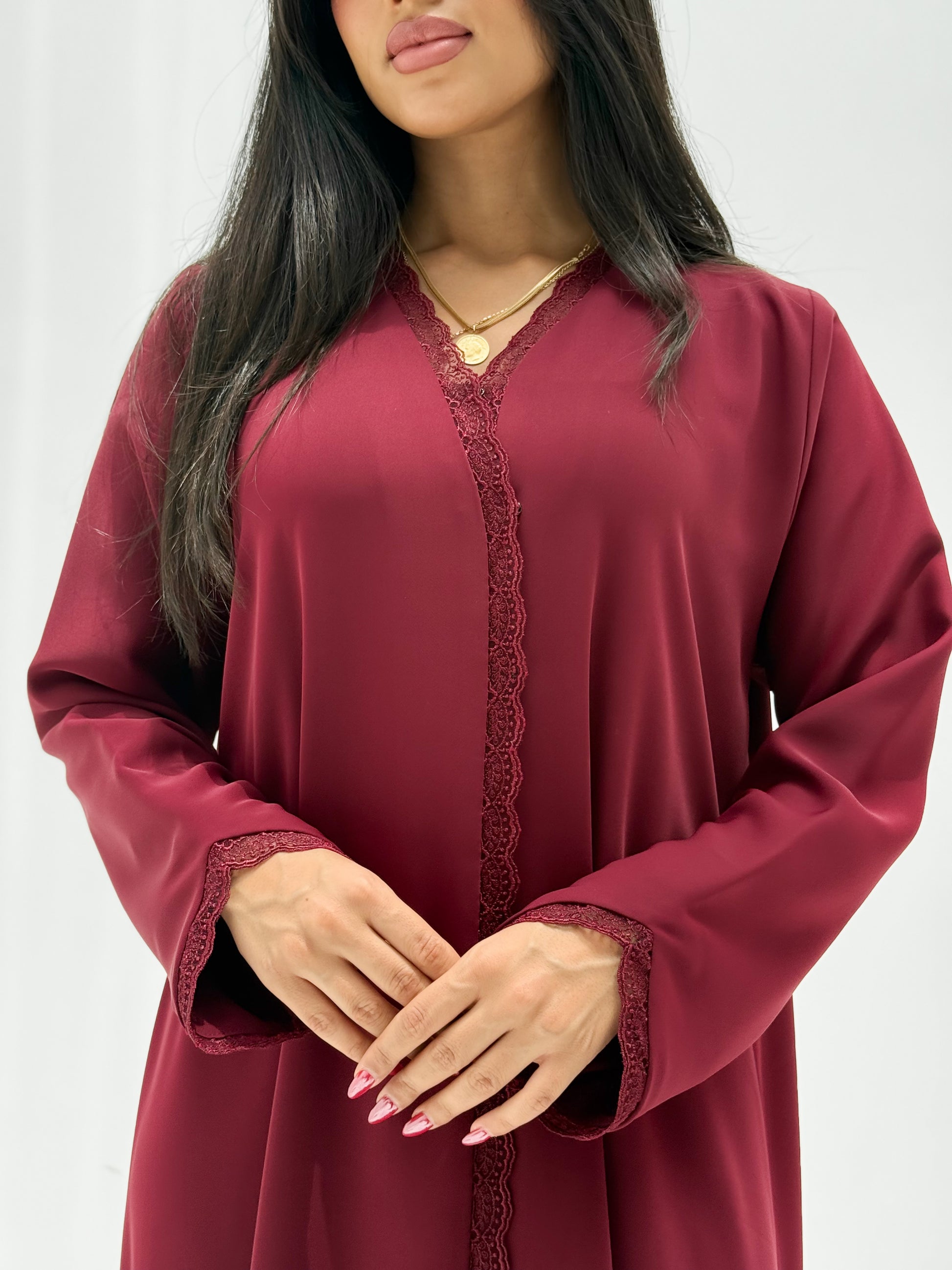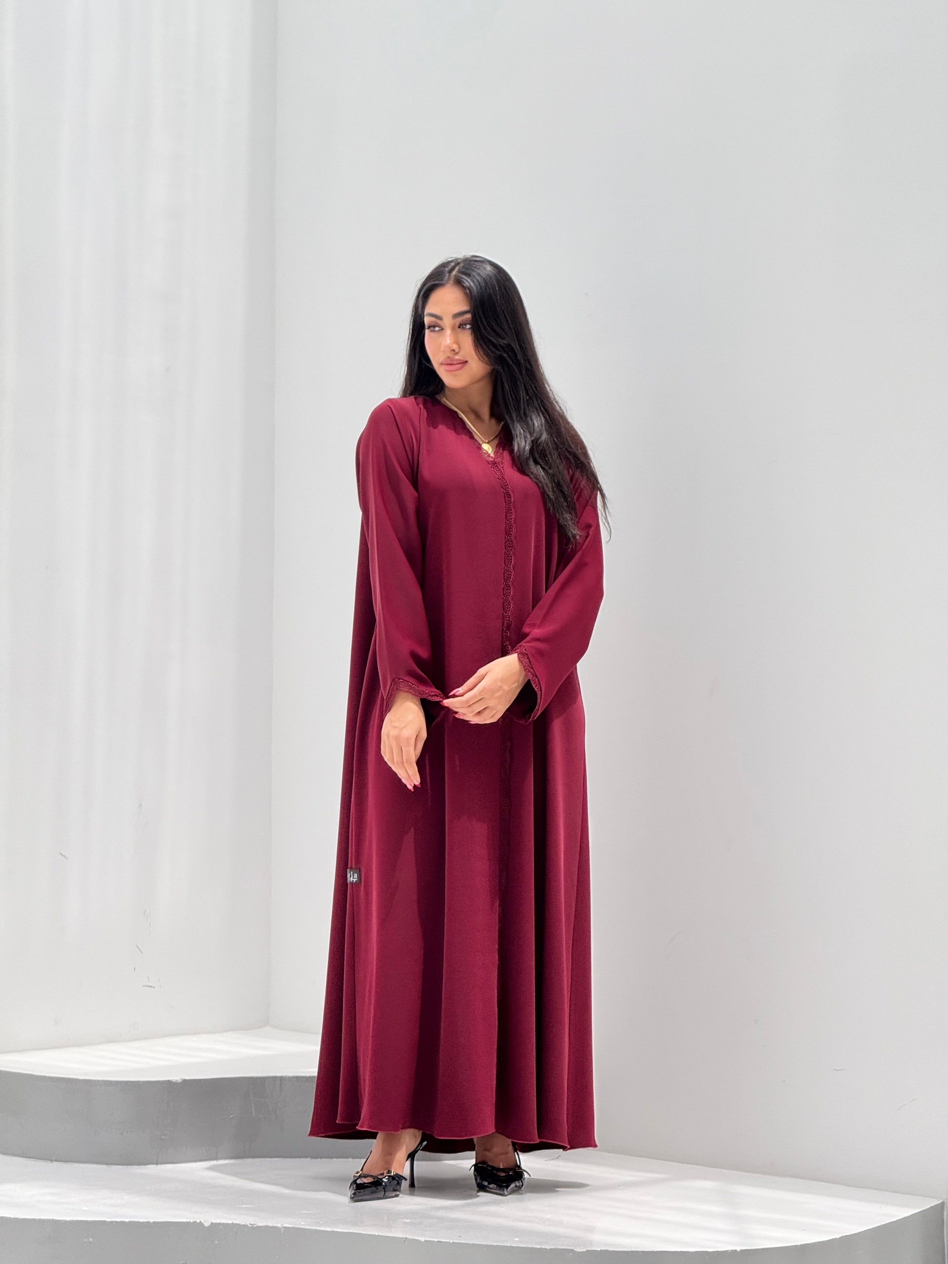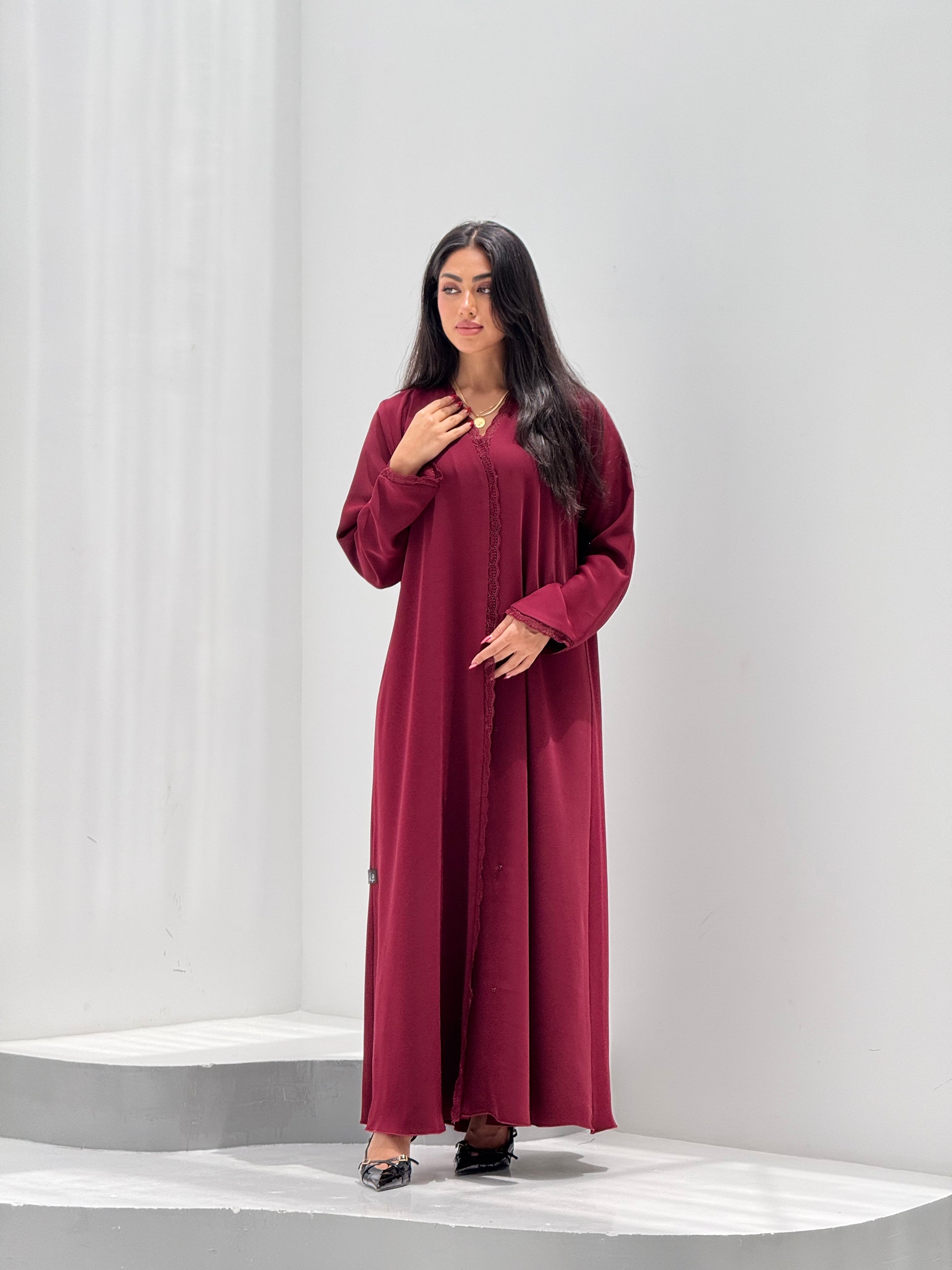 قصة العبايه: كلوش مع قصه على الاكمام ودانتيل من طرف واحد